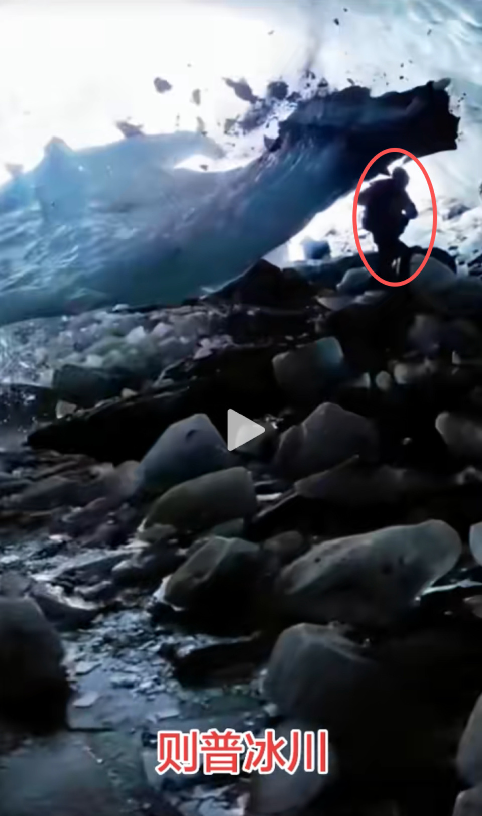 近日,一段近2分钟的视频在网上流传:多人在冰川溶洞内,突然上方发出巨响,洞顶的冰块掉落,一名举手机拍摄的游客躲闪不及,被巨大的冰块砸中。其他游客惊慌跑出溶洞,视频里有儿童被吓哭。逃出来的游客称砸到一个人,但无人认识被砸者。多个网传视频显示,事发地位于西藏林芝市则普冰川。