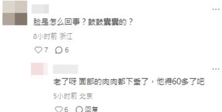 网友对此议论纷纷,有人震惊发问:" 脸是怎么回事?鼓鼓囊囊的?",也有网友感慨 " 终究是老了,面部的肉都下垂了 "" 不敢相信,周华健已经老成这样了 "。