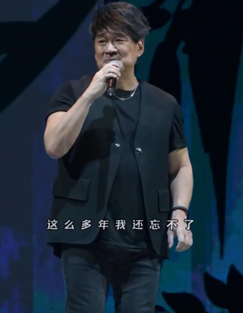 从演唱会现场流出的视频来看,周华健当天特意选择了全套黑色系服饰,黑色 T 恤外搭黑色背心,试图通过穿搭修饰身形、达到显瘦效果。